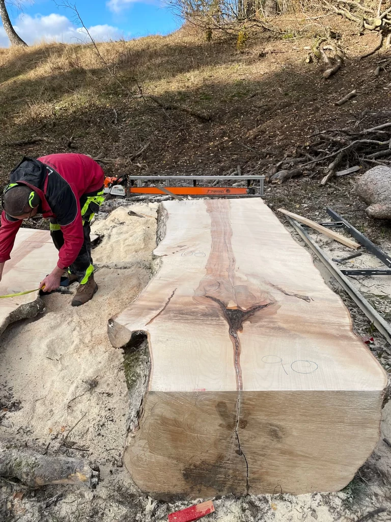 Tento druh pořezu je vhodný primárně pro silné kmeny. Ideálně od průměru 80 cm a více. Dokážeme proříznout téměř 2m průměr kmene!