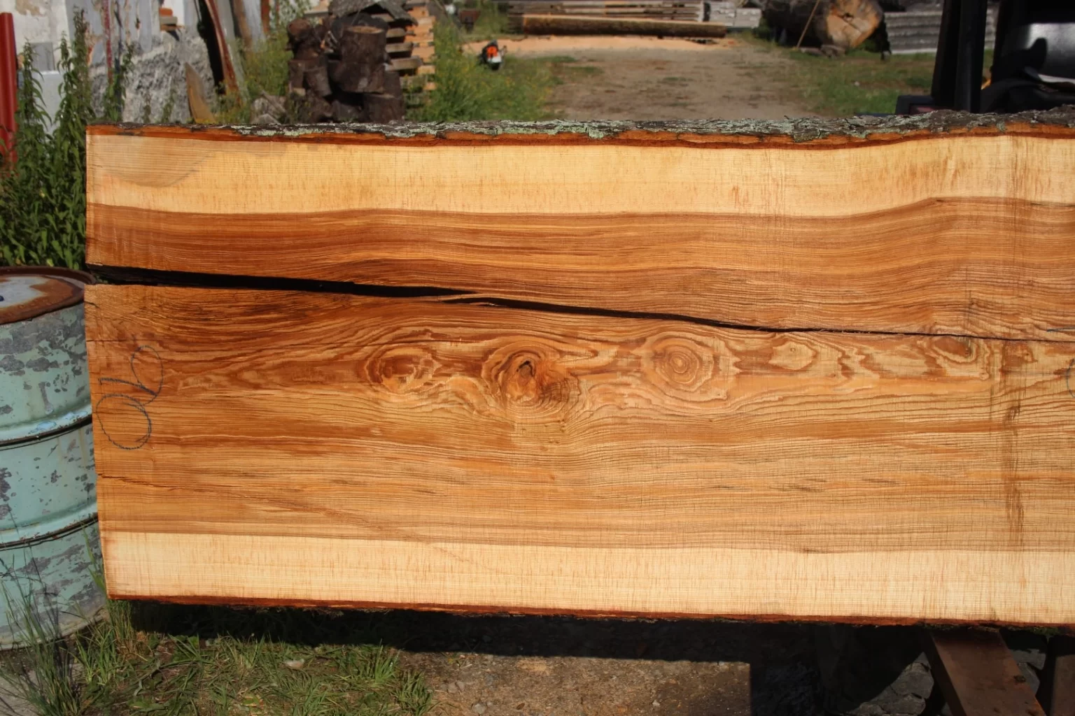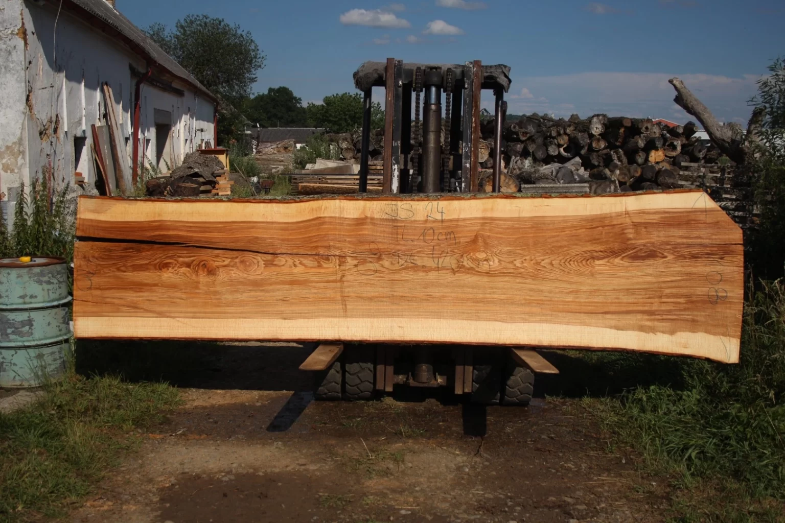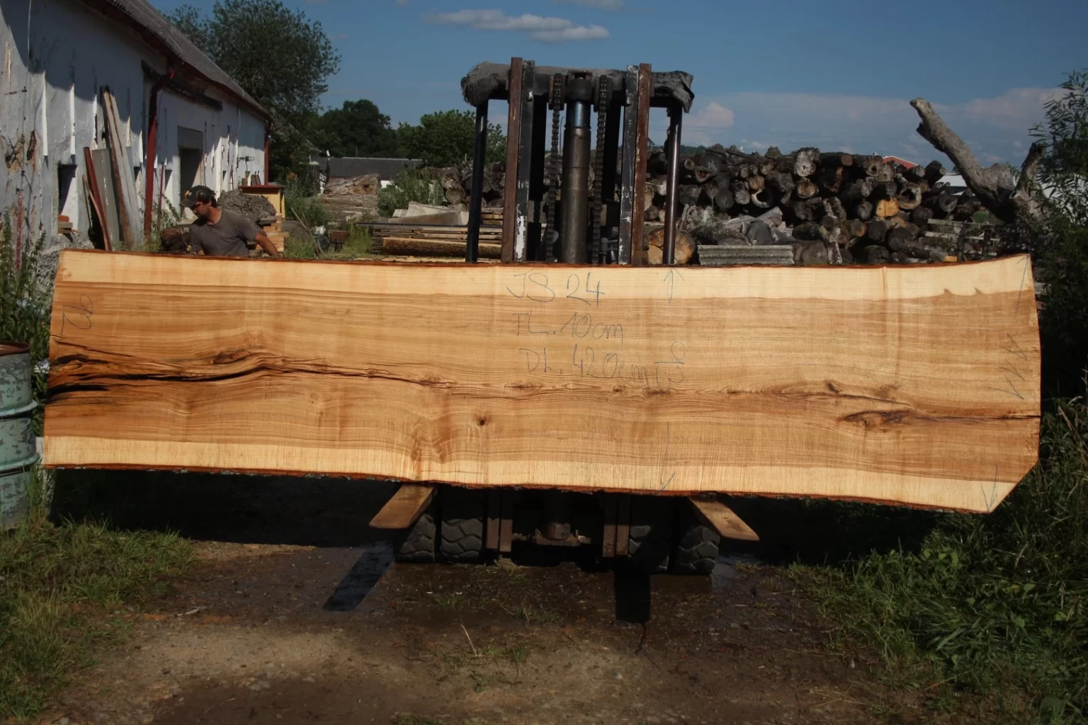 Jasanové fošny s krásnou kresbou, v podstatě bez suků. Prasklina se časem ještě rozrostla a protáhla. Uloženo u Hluboké nad Vltavou. V případě zájmu volejte +420 777 773 887