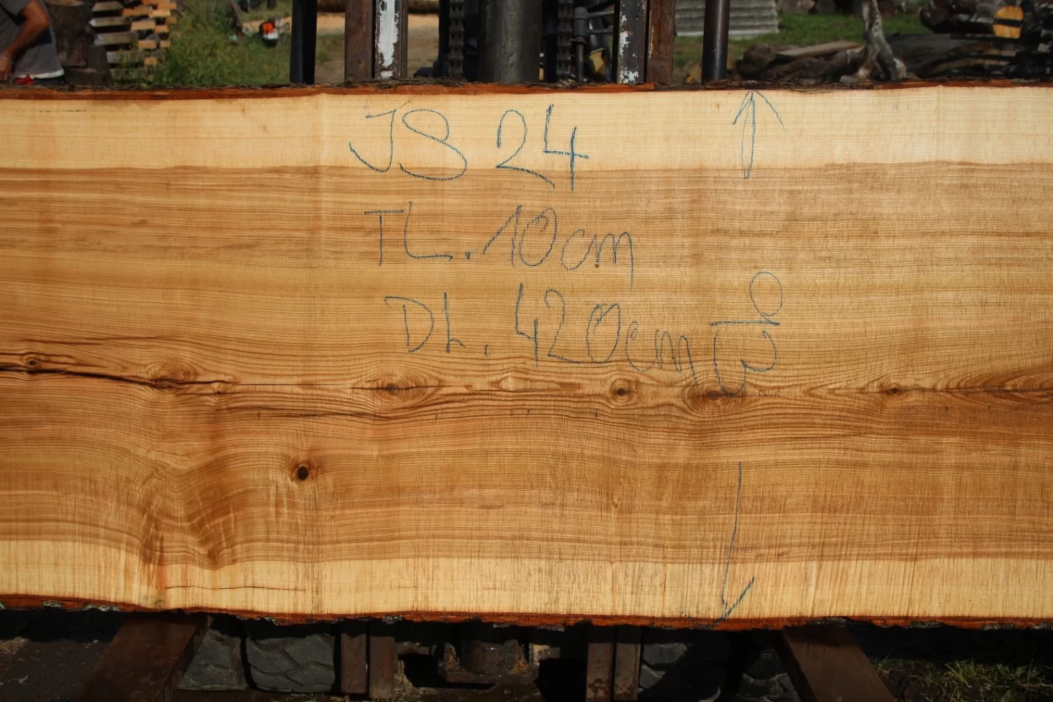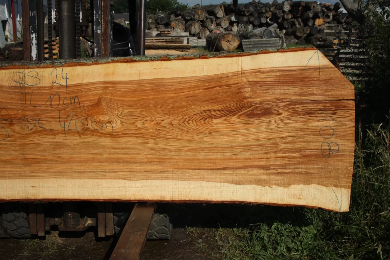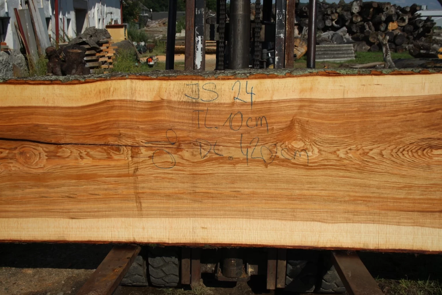 Jasanové fošny s krásnou kresbou, v podstatě bez suků. Prasklina se časem ještě rozrostla a protáhla. Uloženo u Hluboké nad Vltavou. V případě zájmu volejte +420 777 773 887