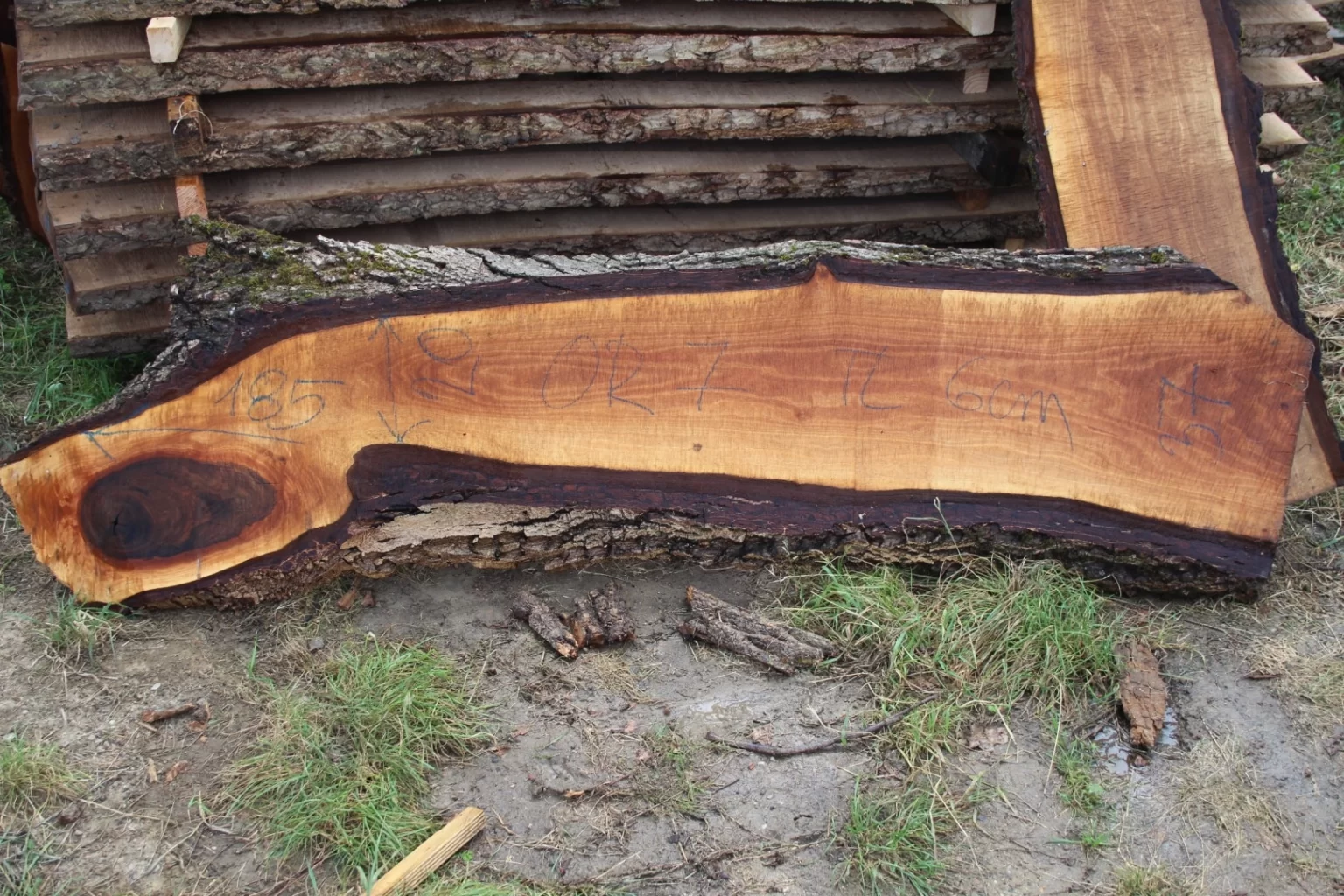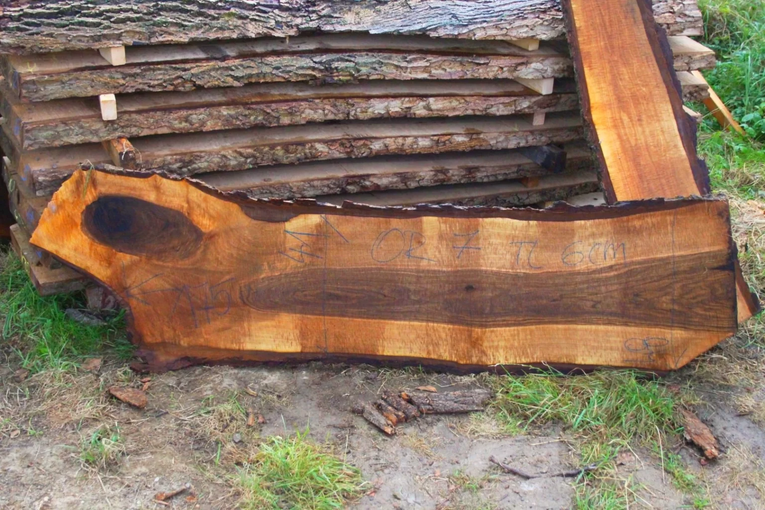 Ořech, káceno jaro 2024 pořez 09/2024. Krásné, široké, tmavé jádro. Při odběru celého kmene sleva
